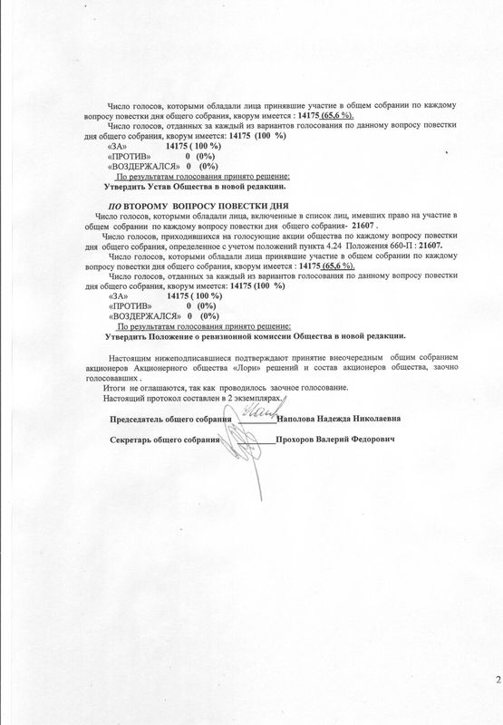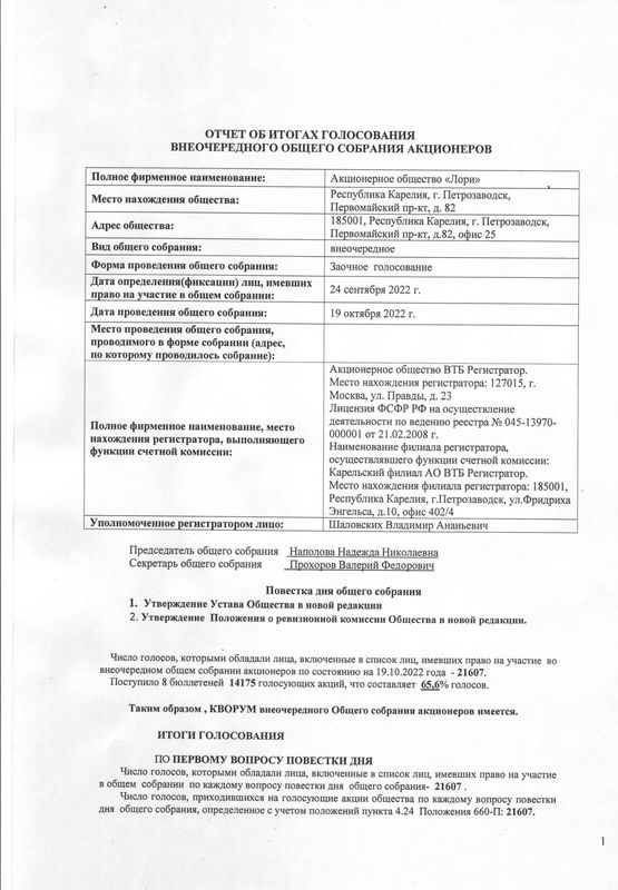 Отчет об итогах голосования внеочередного общего собрания акционеров
